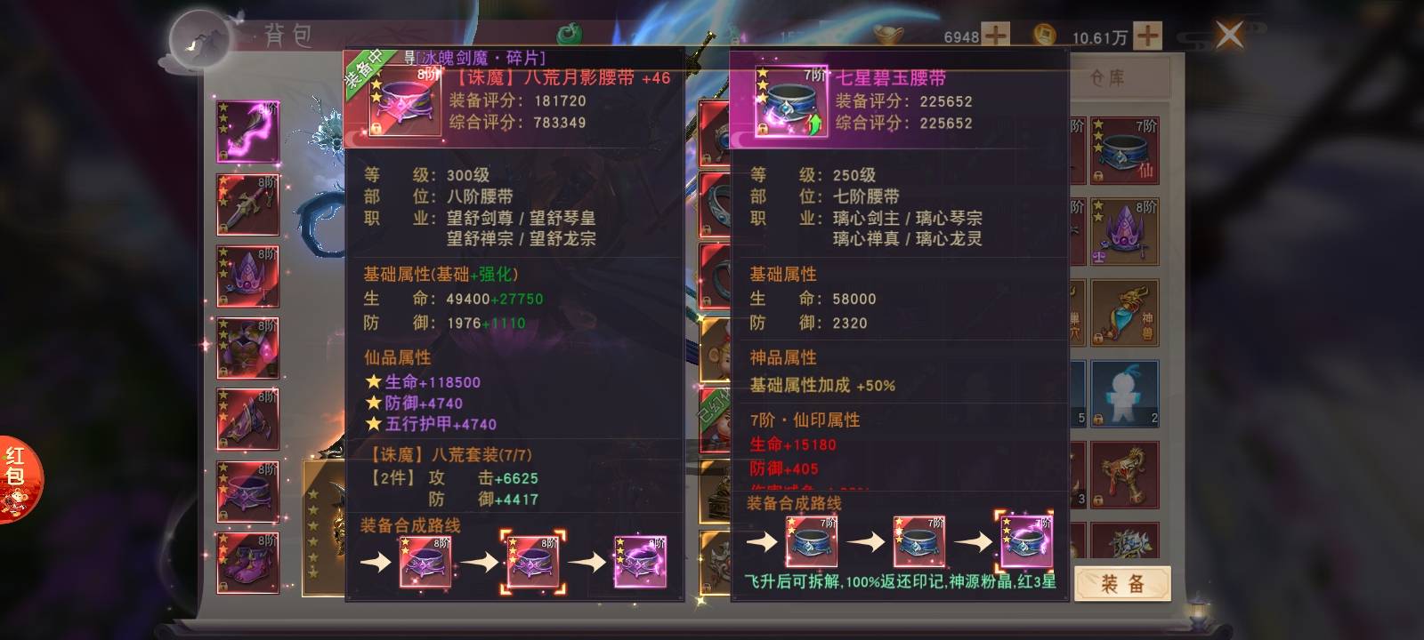 三星红装不能拆,三星粉装要400级飞升完成才能拆