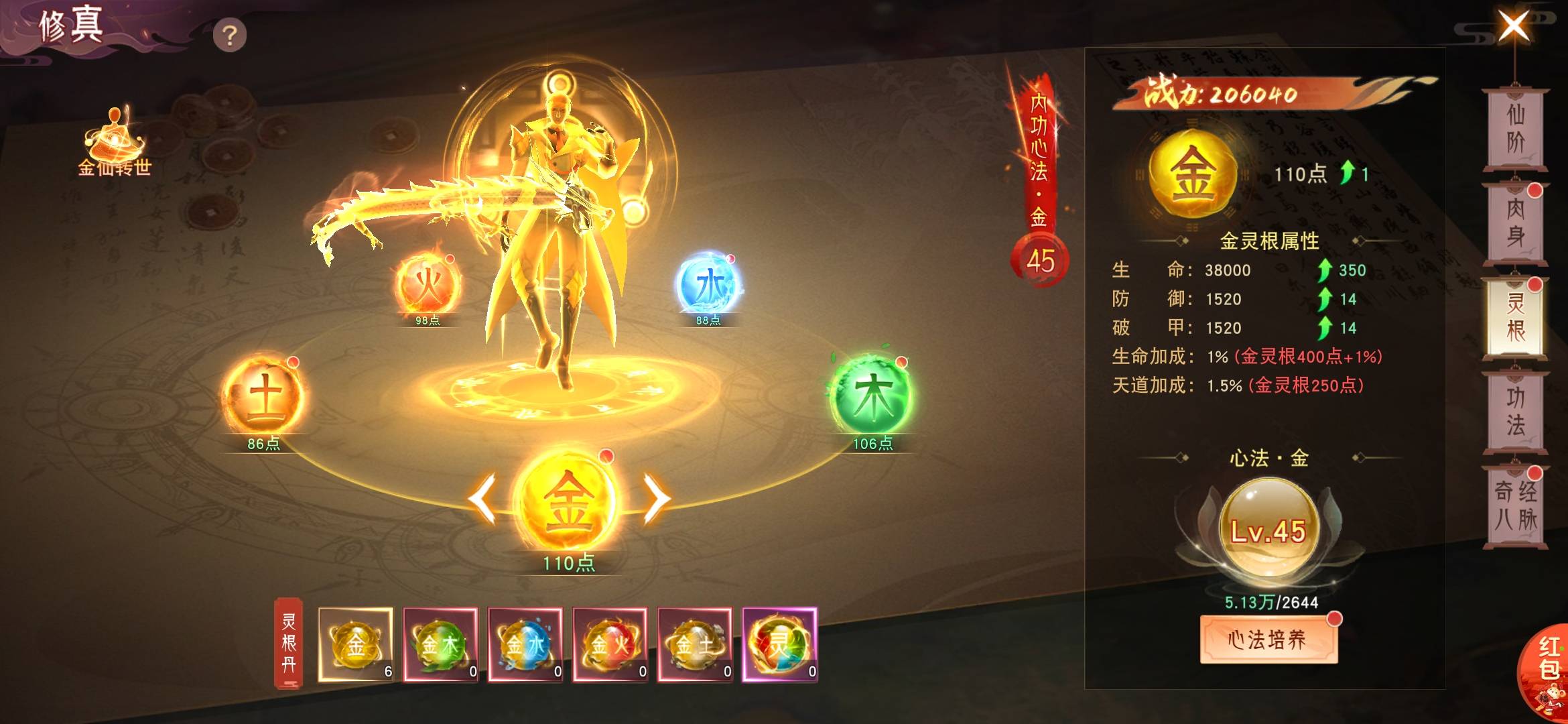 求大神指点 灵根金木水火土平均培养 还是注重哪几个