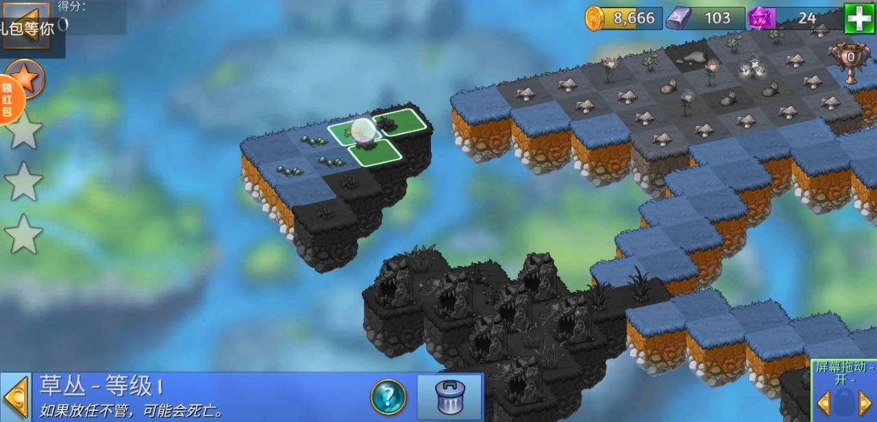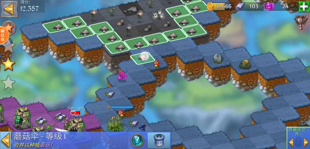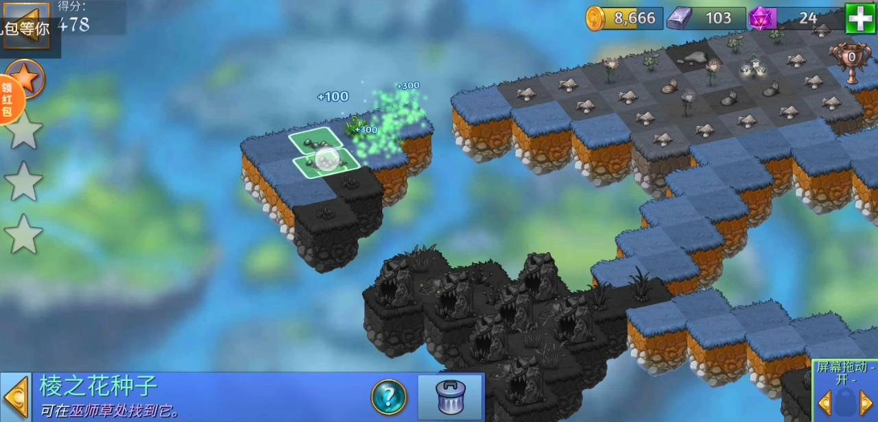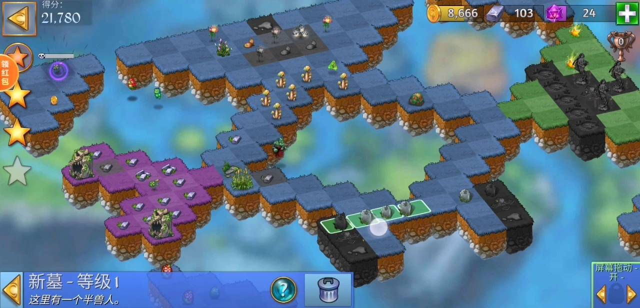 注意事项:①需要4个自己墓碑,所以左边的鬼屋只需要点击其中4个即可。②水洼放置久了会变成蘑菇,建议集齐四个墓碑,一起消除后,同时得到两个水洼再合成就不怕放置时间太长。