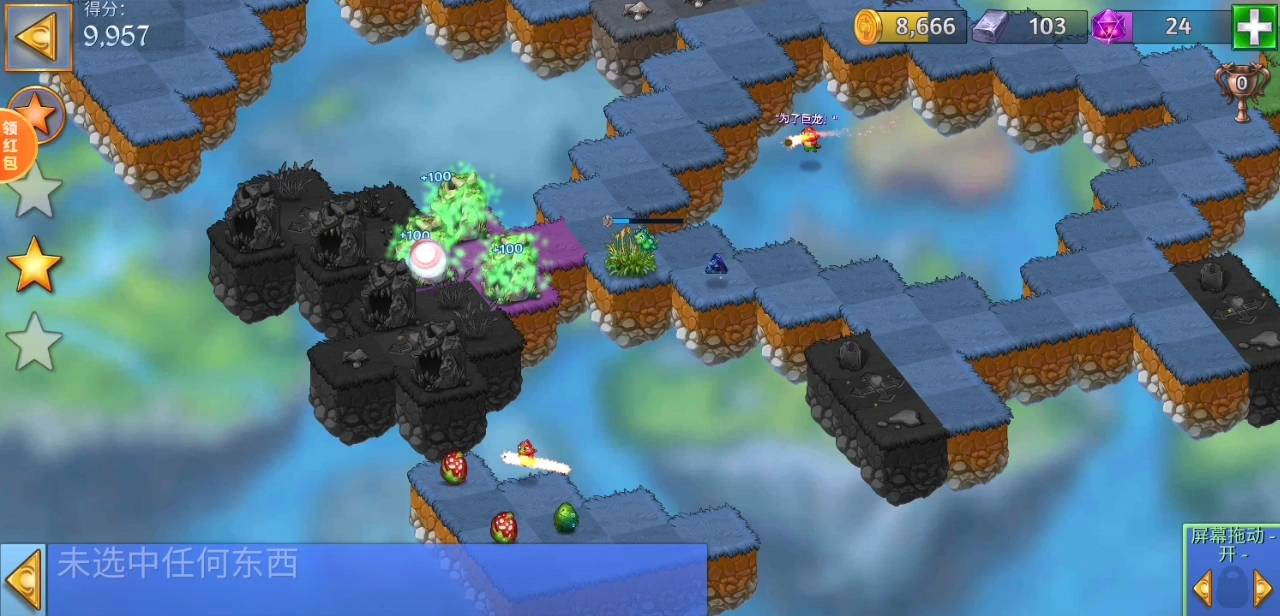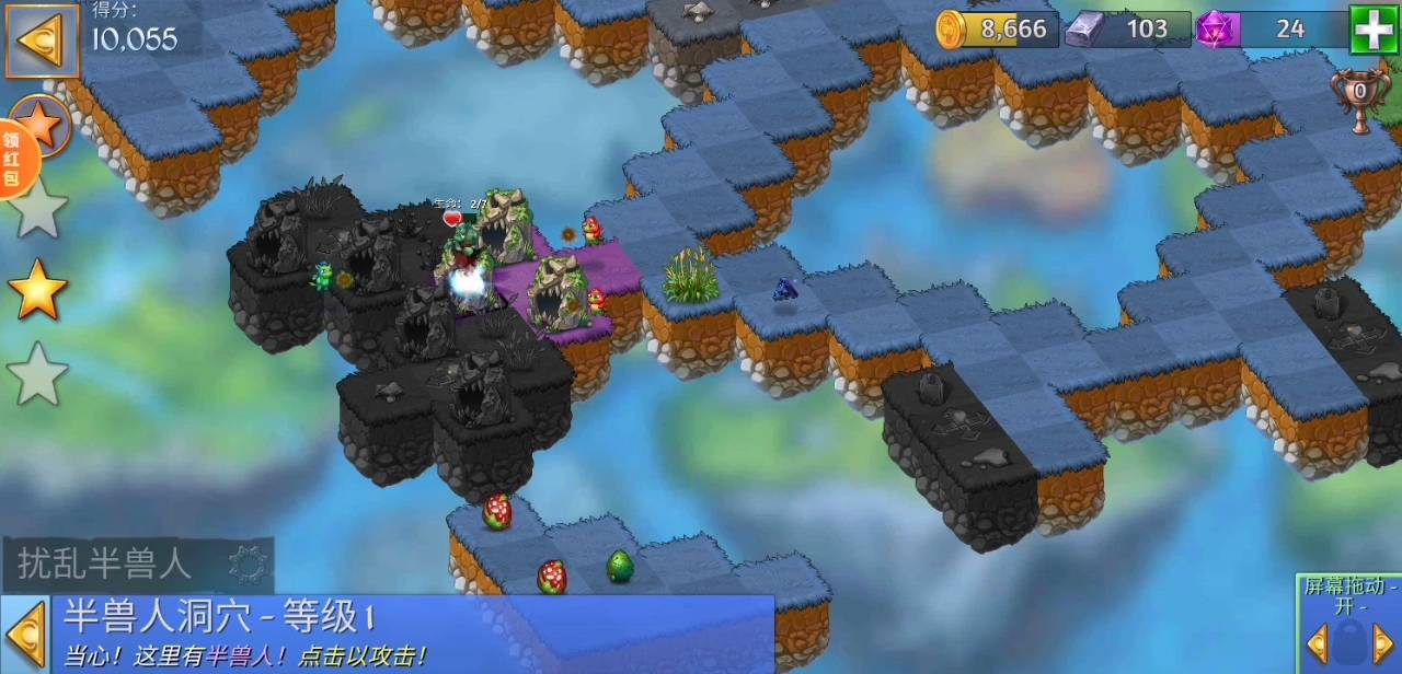 ⑦双击山洞(如图三),引出绿鬼,让龙仔打绿鬼,获得一级墓碑。ps.这一关只需要4个绿鬼,因为第④步已经打了3个,所以这里只需要再打一个即可。点多了会分散龙仔攻击力,浪费时间。