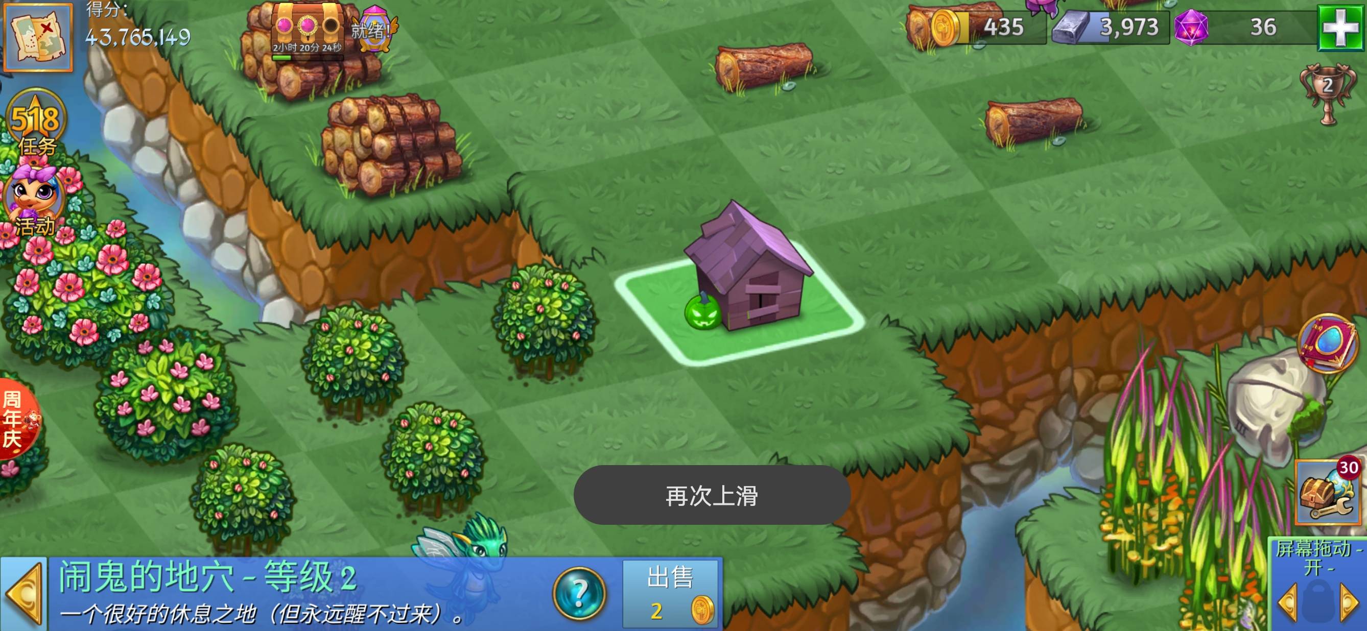 去黑色的水果树那里采集,有一定的几率采集到黑色的宝箱,多采集点宝箱然后合成到最后,点开之后有几率会出墓碑,那个墓碑是好几个小墓碑在一起的那种,不知道的话你点开那个鬼屋的图鉴,就可以看见第一个那个样子,个人建议你不要合成,它会慢慢变成小鬼屋的?