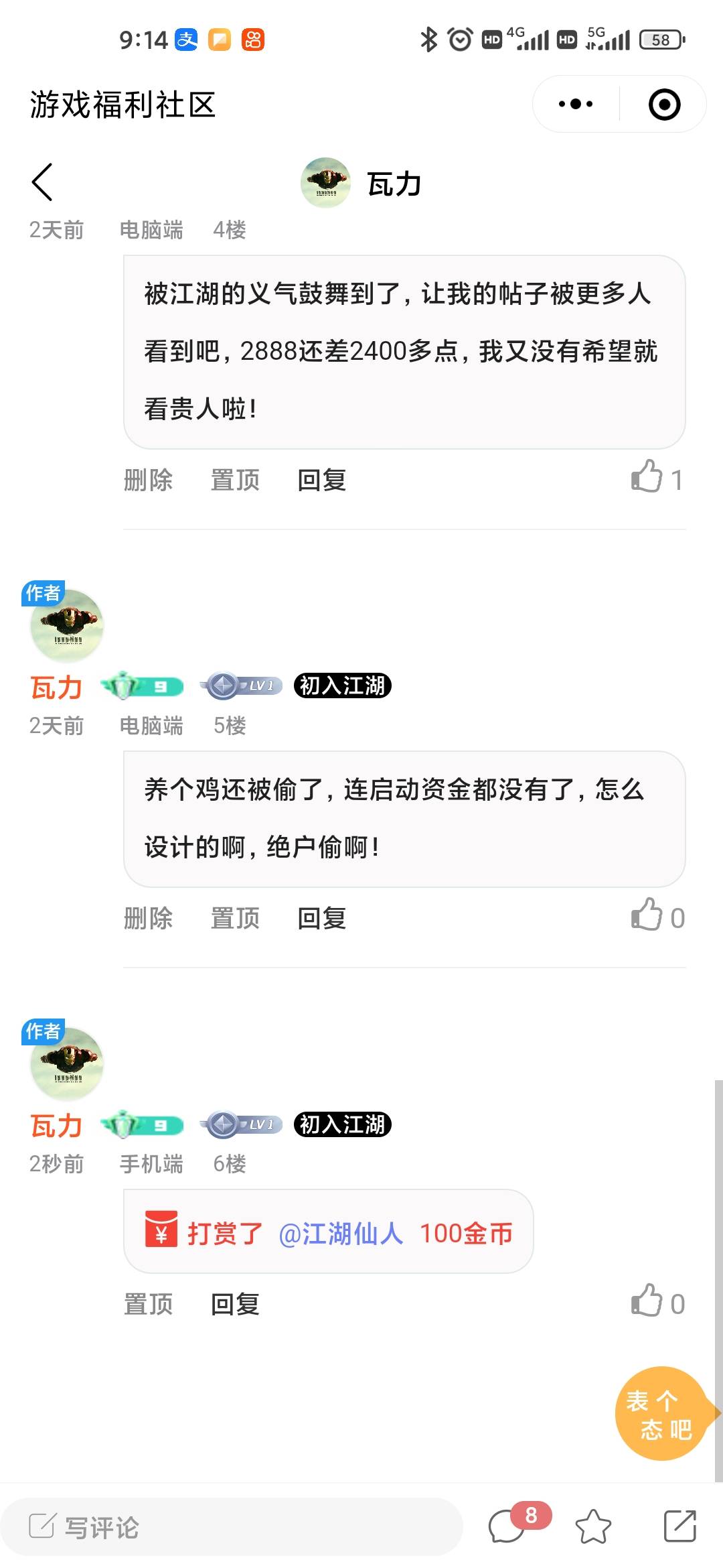 前两天来社区,开启了领取天仙道月卡的曲折经历,2888对于不懂的新人来说还是挺多的,做任务给了大几百,距离2888遥遥无期,心生侥幸心理,去幸运转盘体验了下什么叫不幸…..还三两天月卡就结束啦,走投无路只好发帖碰运气了,我在帖子里说了,下月必还!第一个好心人