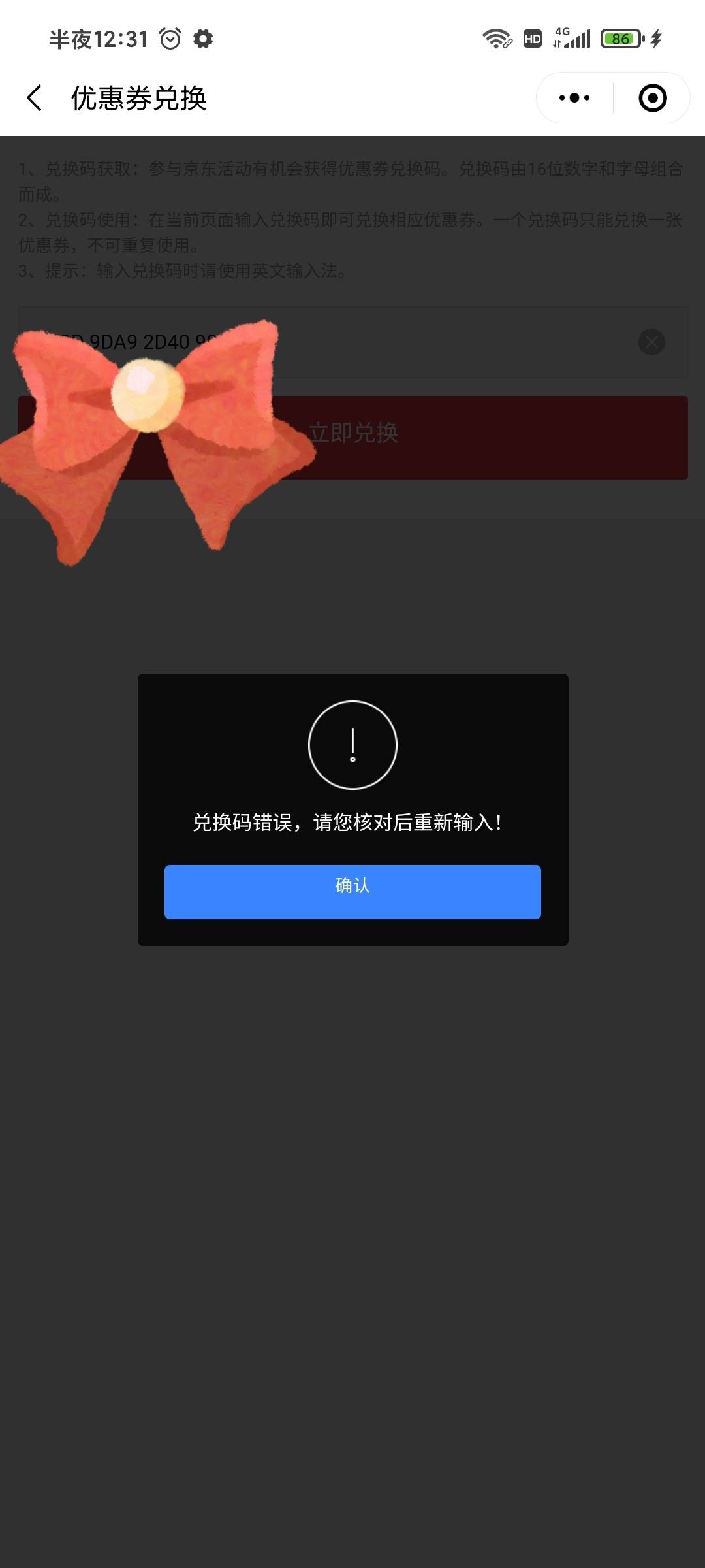 我兑换了个,礼品卡你绑定,复制粘贴兑换码就行,你把二哈发的其他字删掉,然后再复制粘贴,如果还是不行,那只能说你比较背,我一开始奔100金币去的,然后二哈给我发了张卡