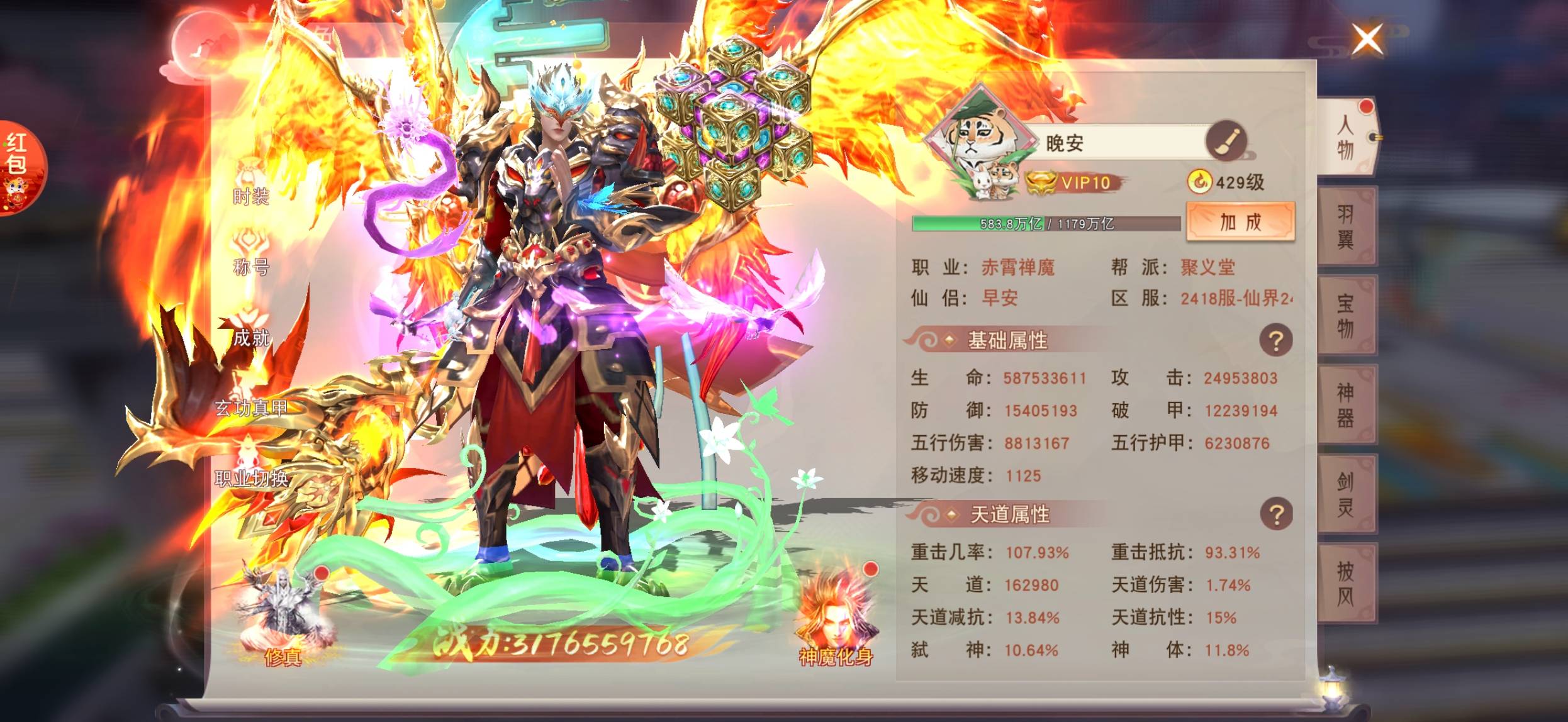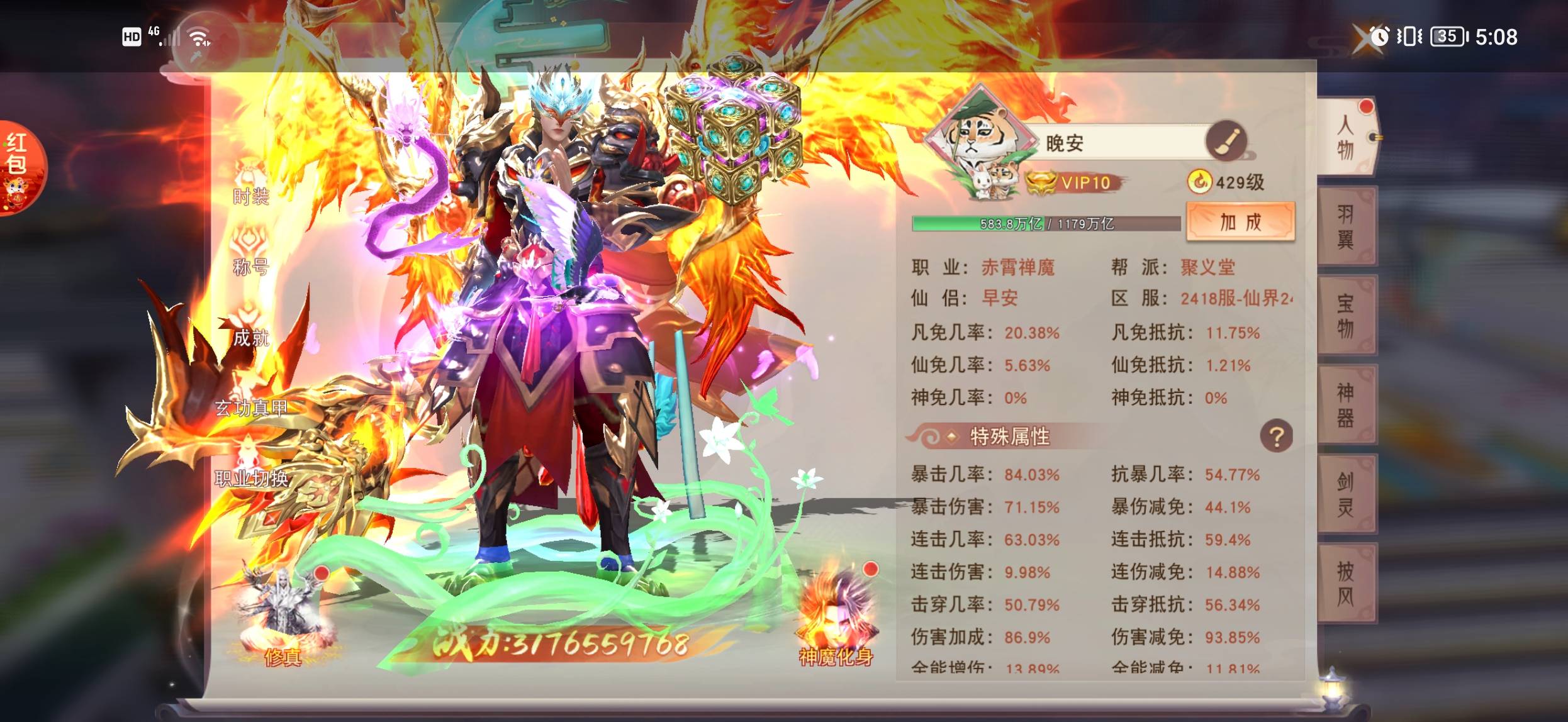 @封_657 没什么可能,宠物我有女娲有盘古,神体目前我这里全跨服就我一个3转,神魔装备全部6星以上