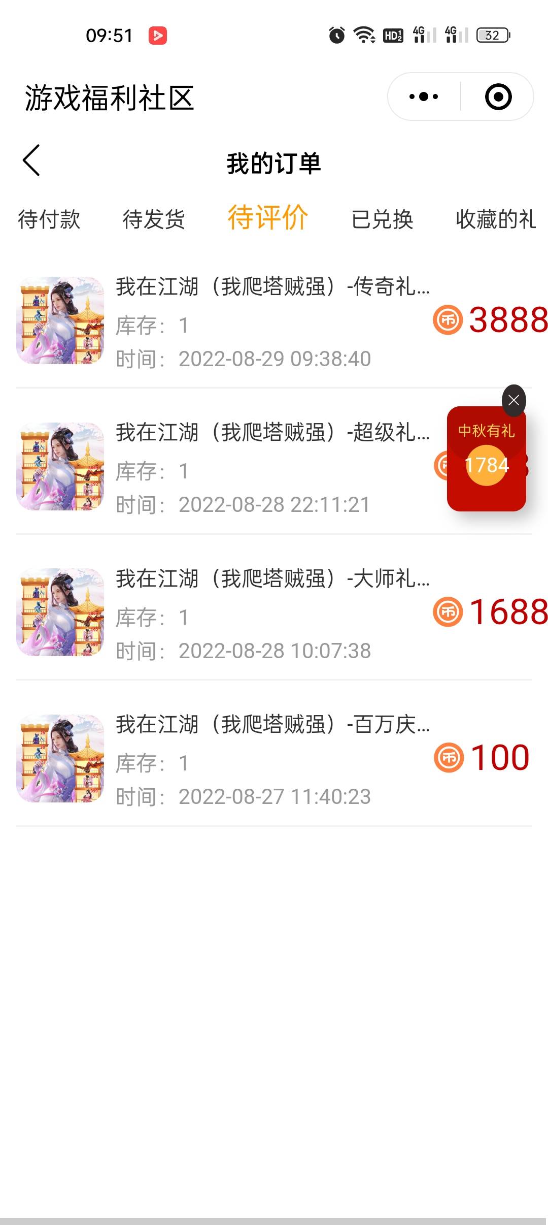 刚刚买的礼包用不了啊,什么情况?帮忙查查,我下血本了呀,3888的呀。