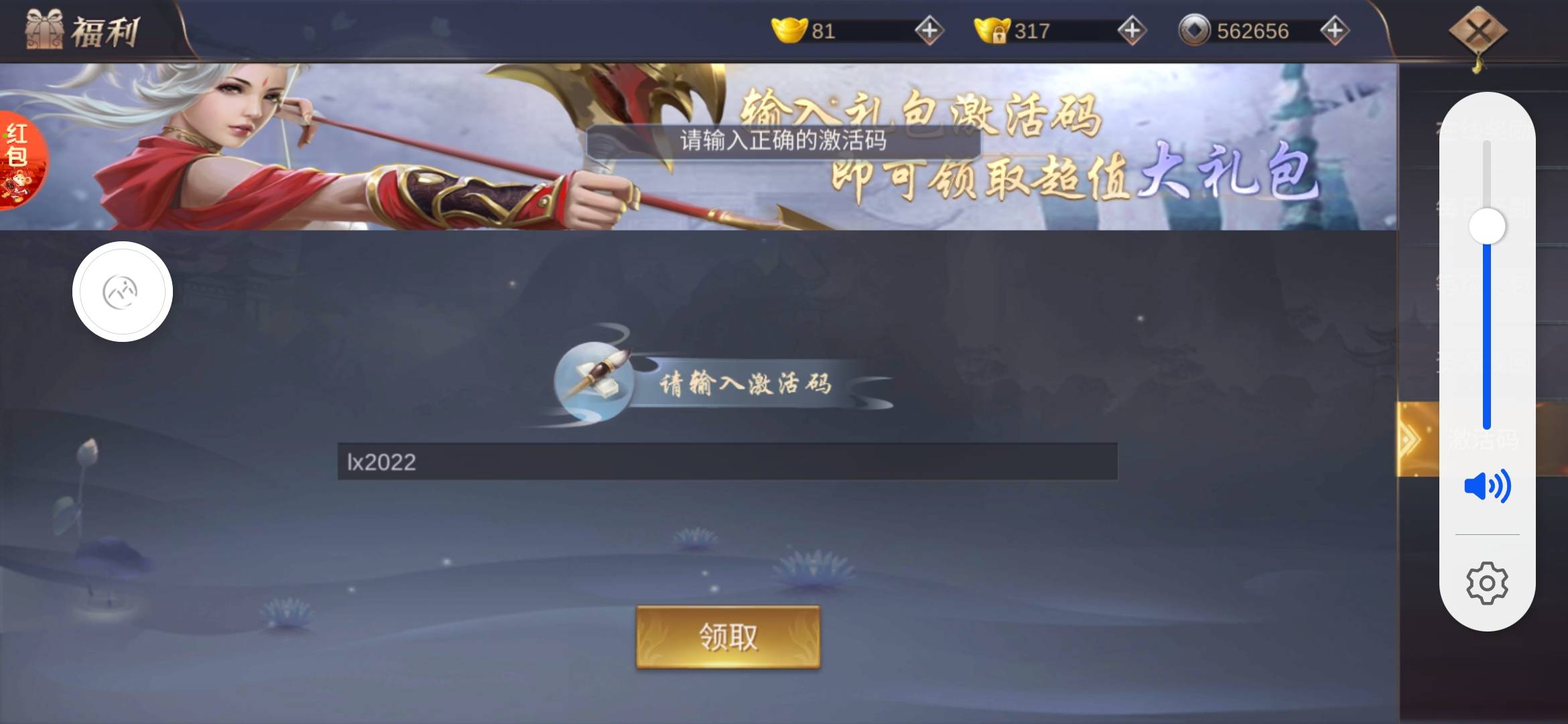 礼包兑换码:合服可以再兑,注意收藏