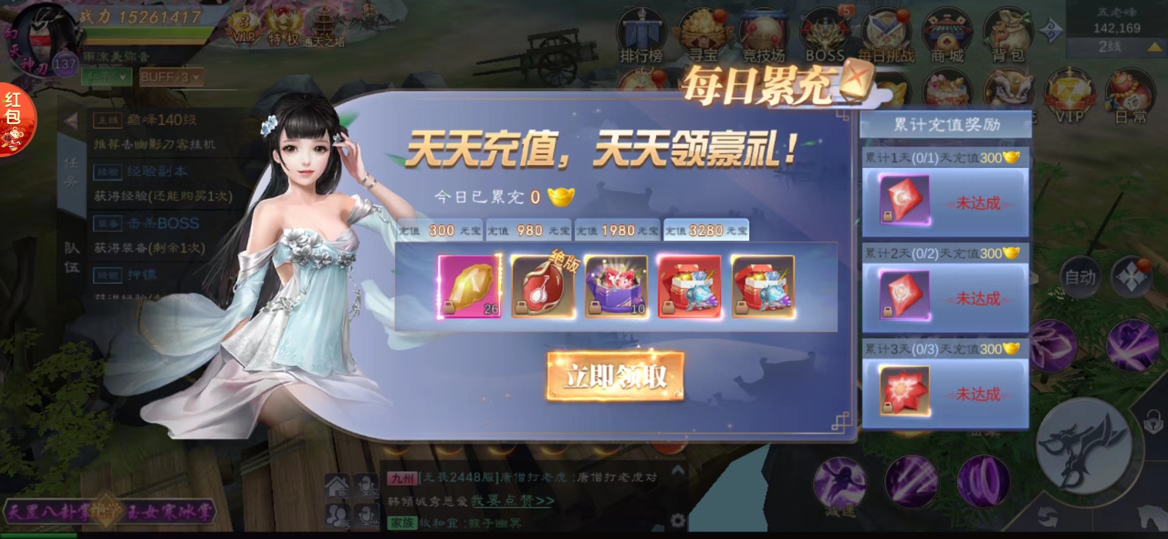 不知道累充到3280元宝前面那几个能不能一起领了,我是1元党,没充过那么高的,你可以在充值-每日累充里面查看一下。如果可以的话这几档加起来有66个珍宝兑换石。兑换一个永久的要100个珍宝兑换石。这个可以问问你家大佬之类的