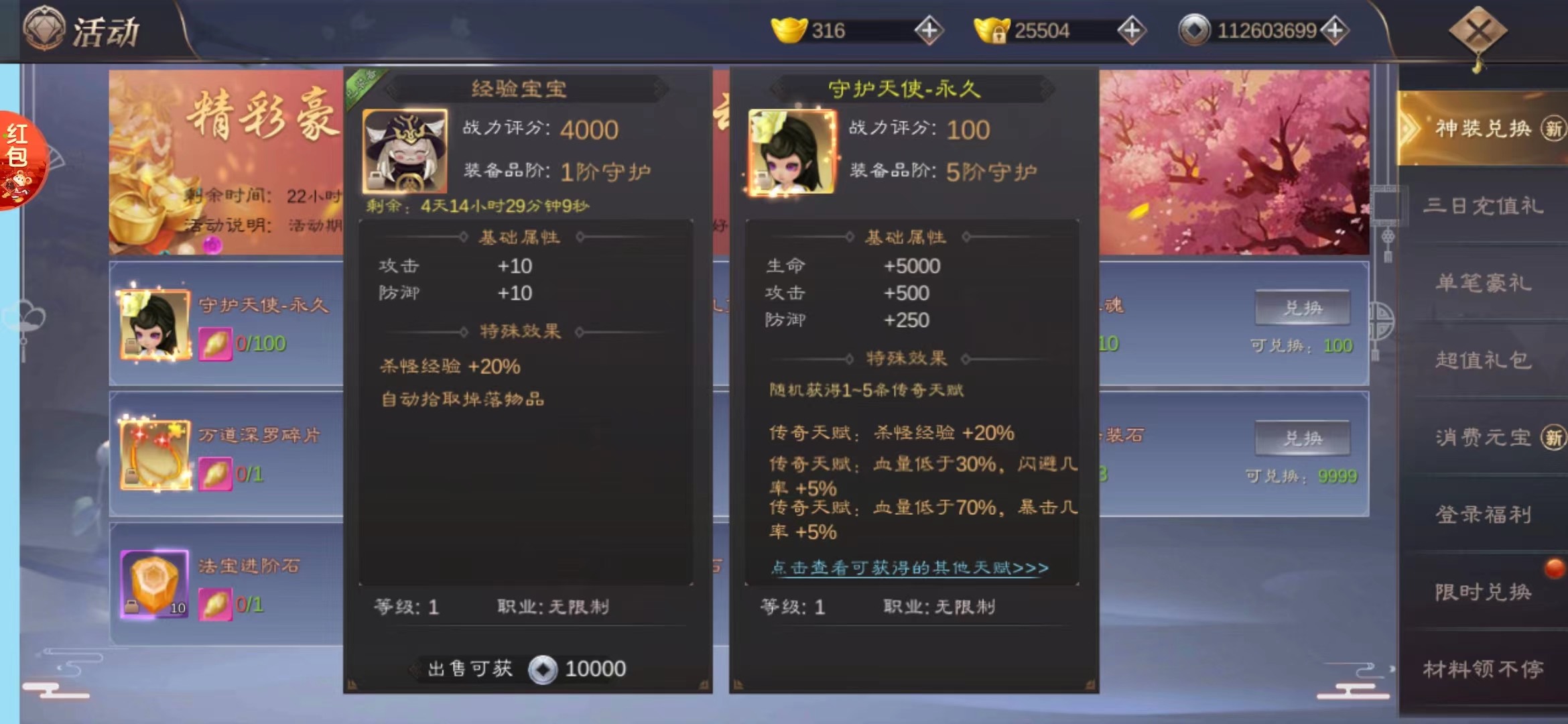 珍宝阁一般要第二个月才有,所以前期永久经验宝宝只有v7