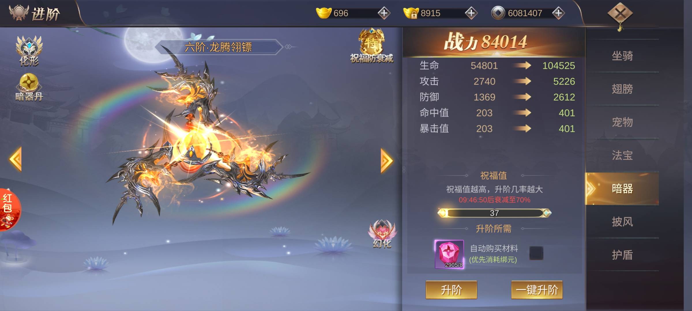 6-7一般2600到2800,7-8一般都是六千,护盾跟披风可能特殊一点,当时披风用了六千一,8-9一万一千九百多点,一般到一万二就稳了