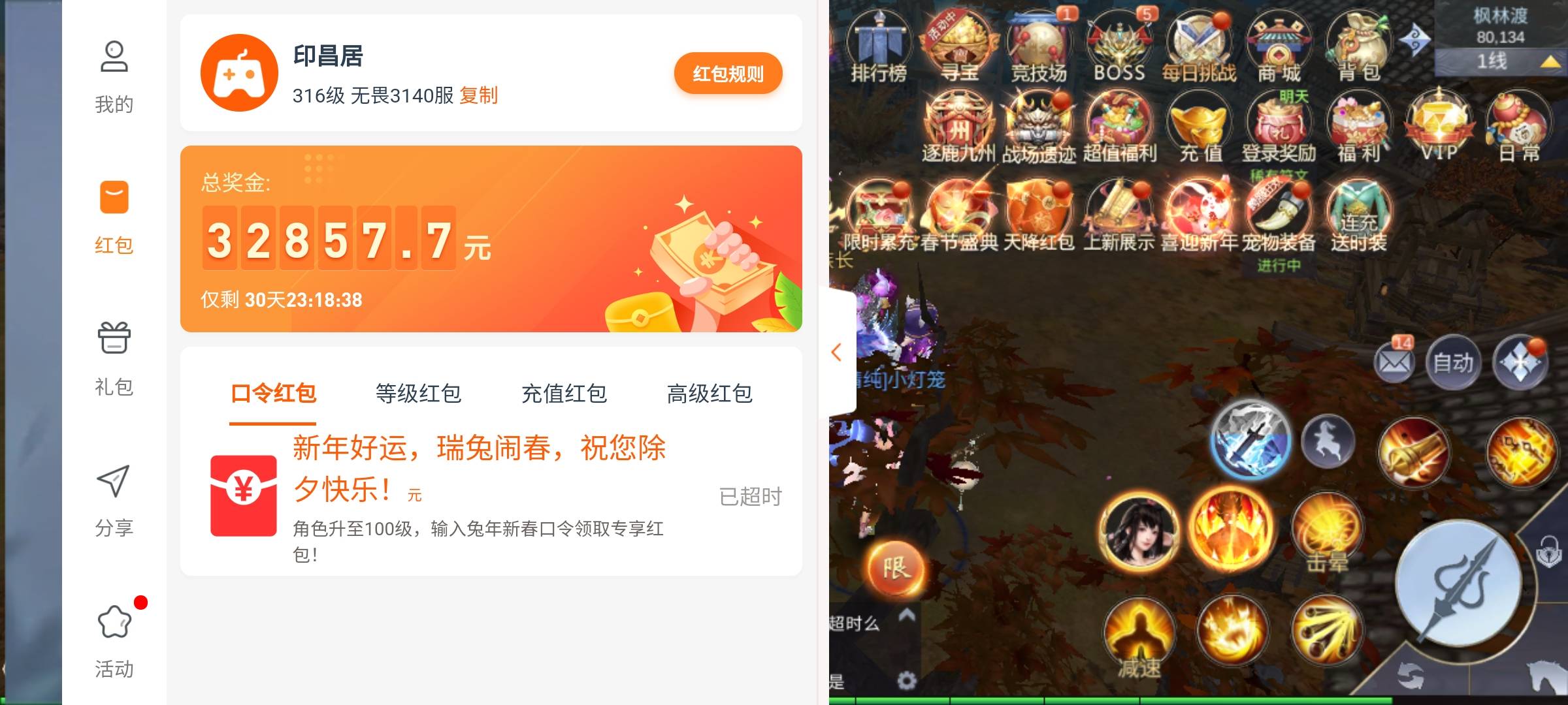 去新区创号,十来分钟就可以了!口令除夕快乐