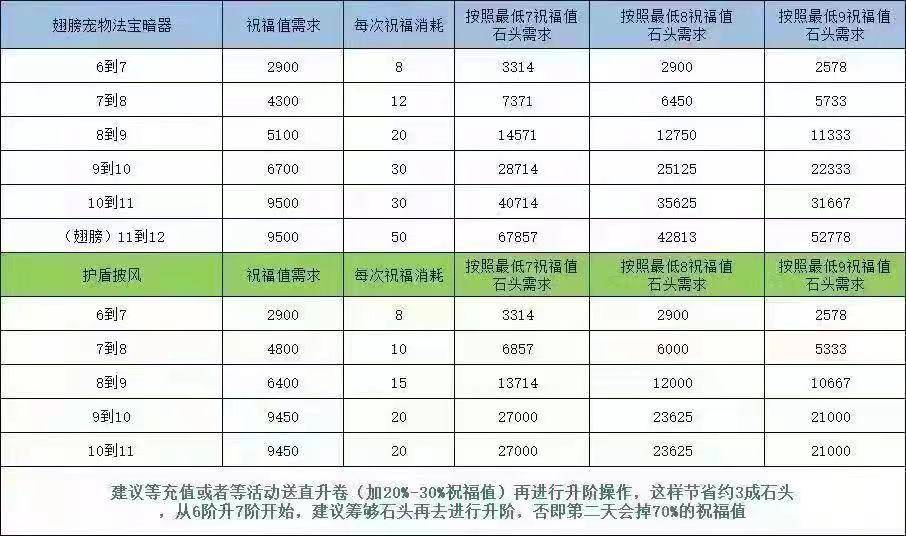 给大家分享下翅膀宠物法宝暗器护盾披风升阶所需石头,以及升阶技巧,详细见下图