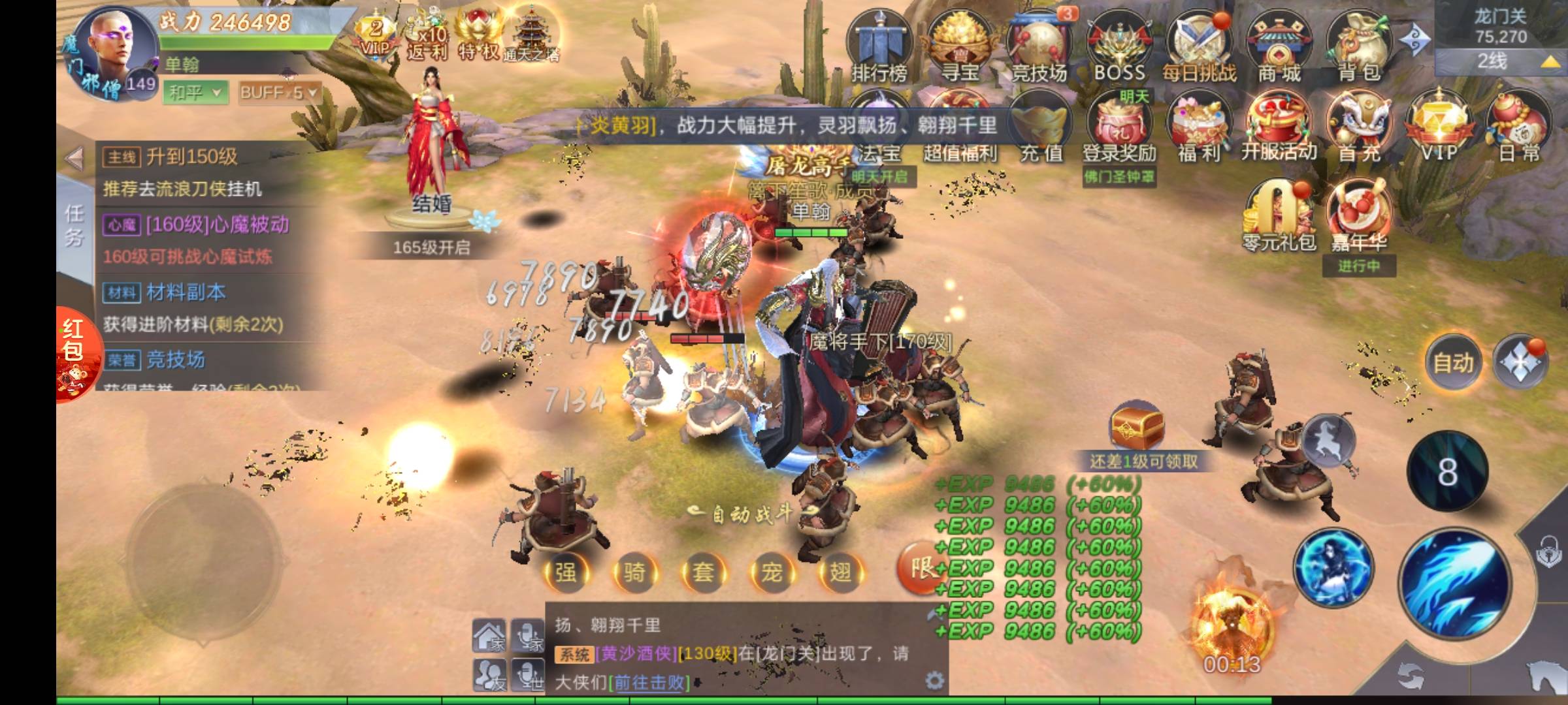 打怪的时候可以看到找一些比自己等级高的