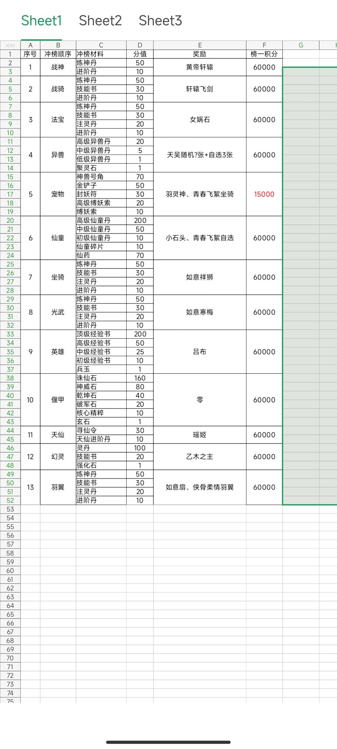 游戏里每天都有一个每日榜单,积分越高奖励越好排名第一更有至尊大奖😍,但是想要积分多的话还是要看自己的收集问题了,每天获得的材料先别急着用掉,在冲榜当天再开始使用可以累计大量积分祝自己冲榜第一! 下面是每日榜单顺序和冲榜材料以及对应大奖图,供各位上仙参考!