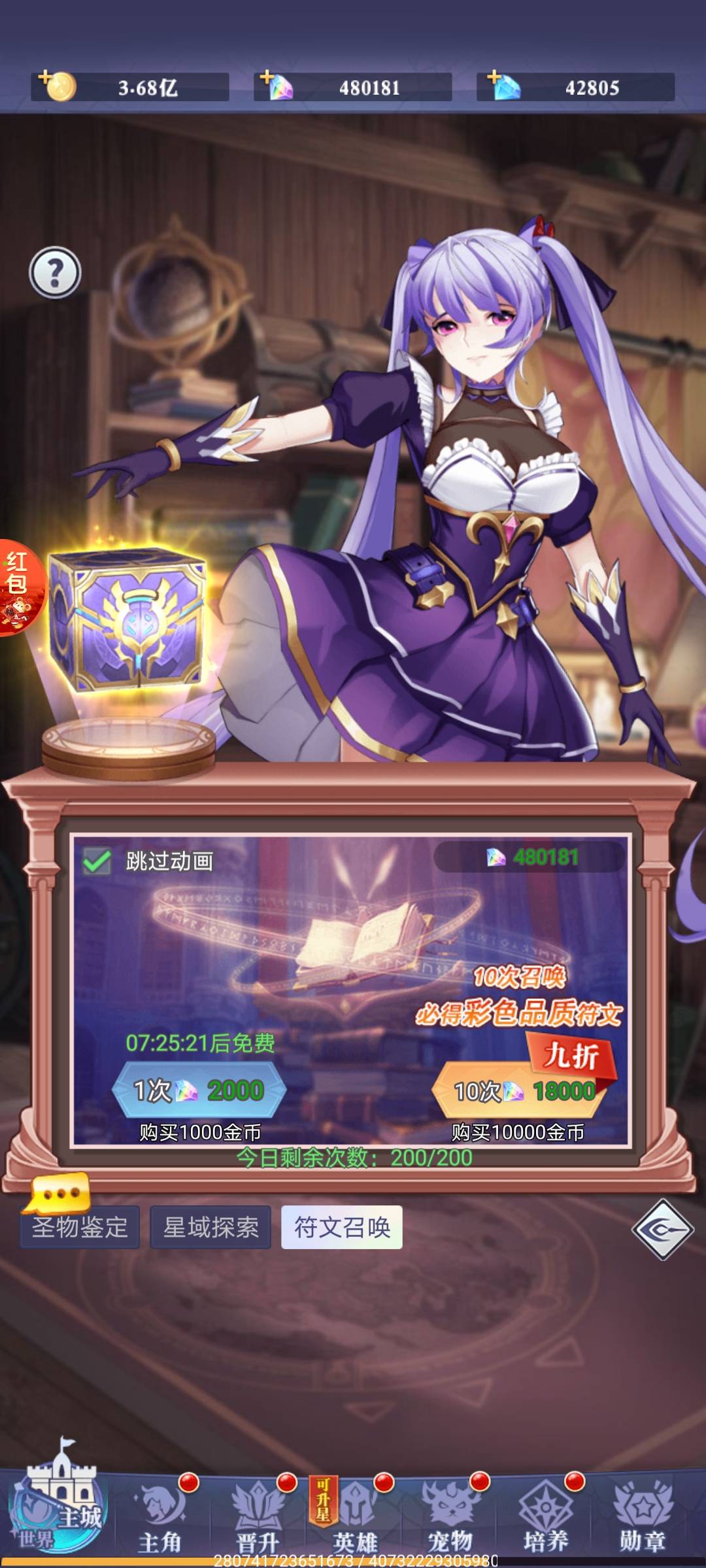 彩钻消费可选项优先度: 第一套输出十星符文》宝具(鞋子必出,战车等富余)>宠物(可做可不做,看自己)>女神>魔法>第二套十星符文>别的 (凑零碎钻石消费可以去升级法阵的空间和时间)