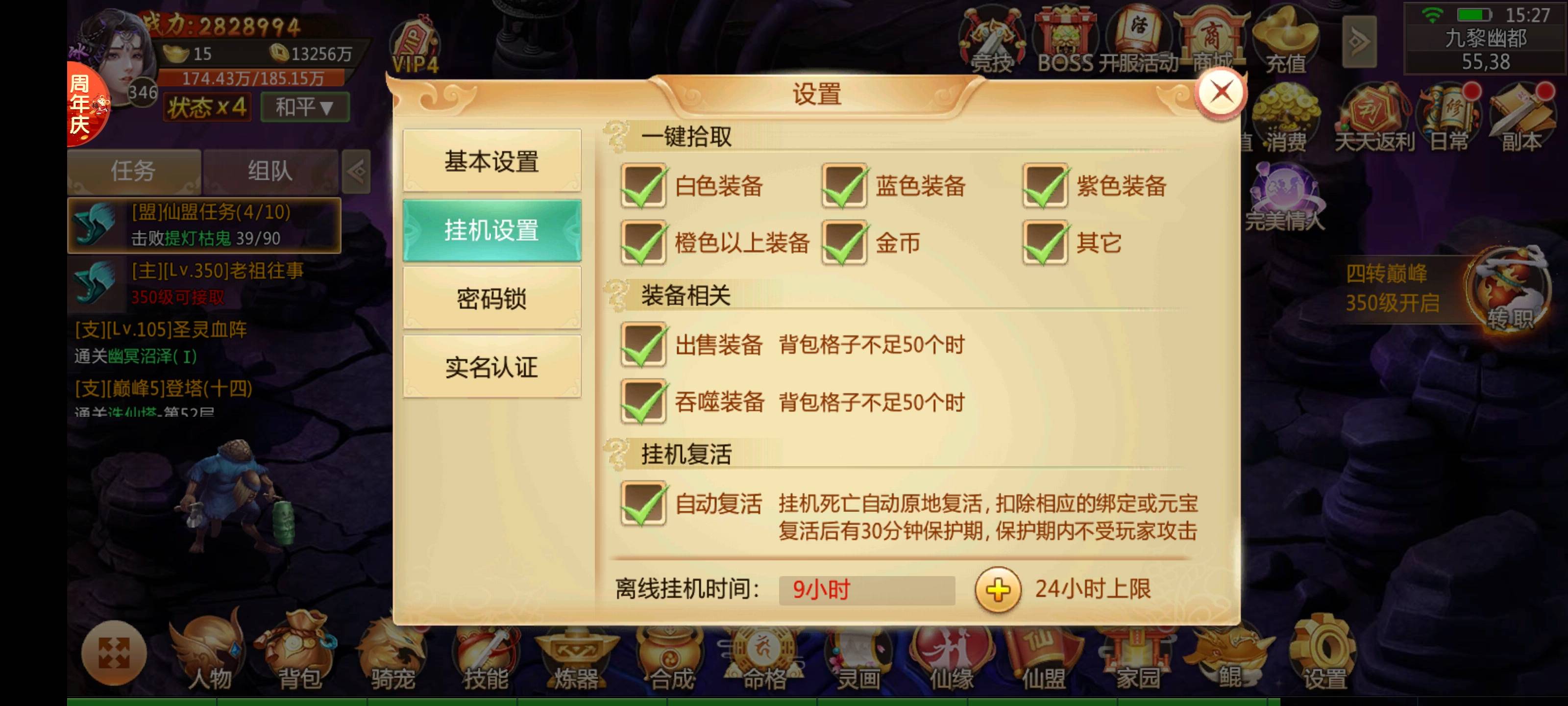 离线挂机应该怎么设置?把白色,蓝色,金币关了吗?