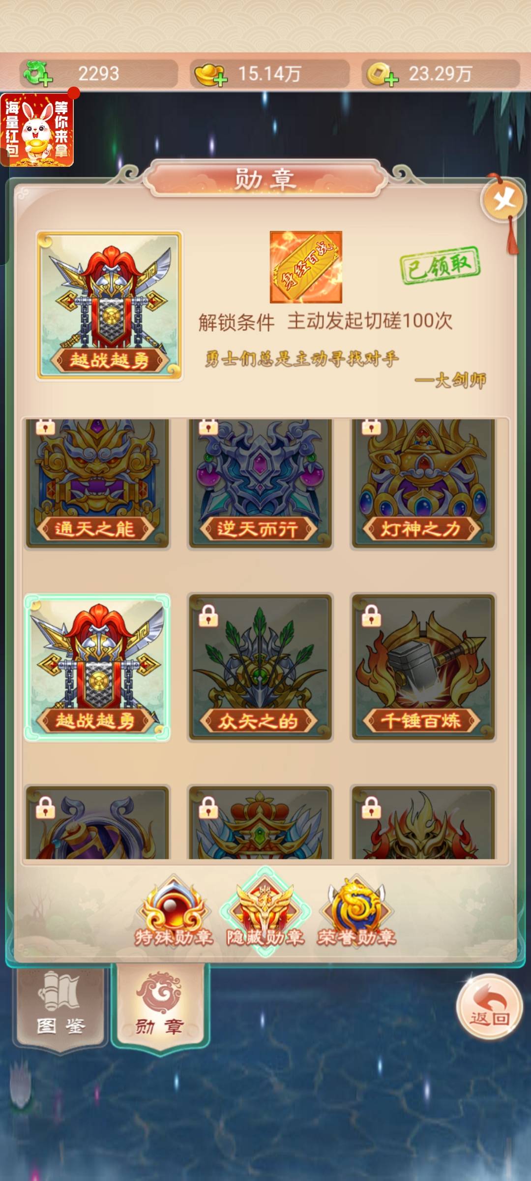 众矢之的勋章是别人找你切磋一百次
