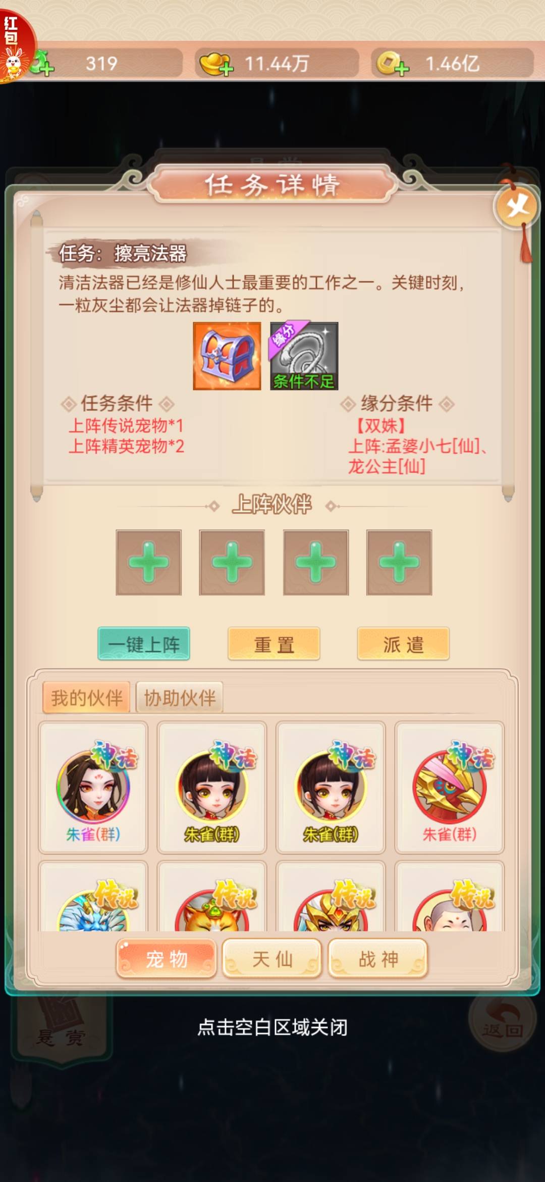 是不是你的宠物和天仙不满足条件。不满足就刷新吧