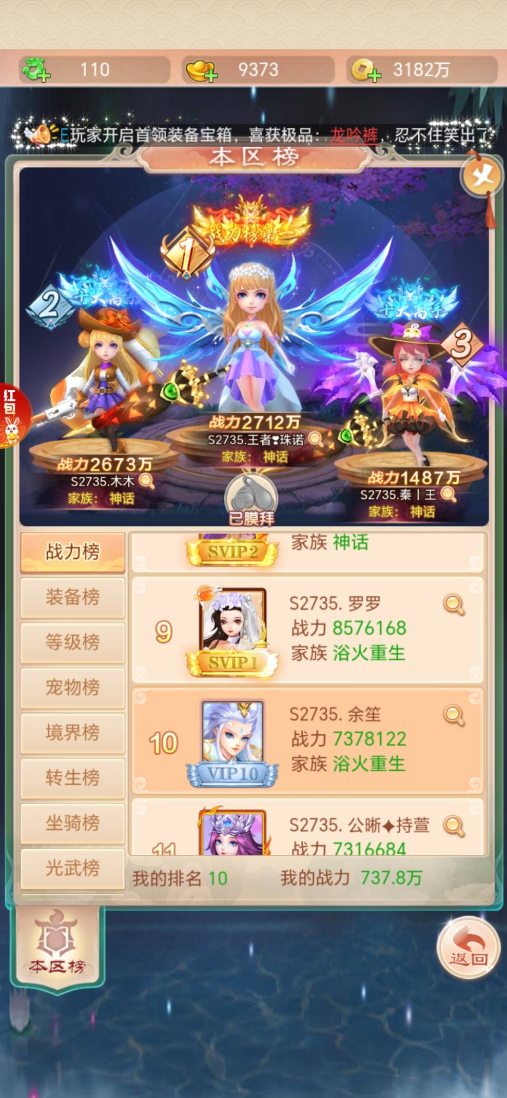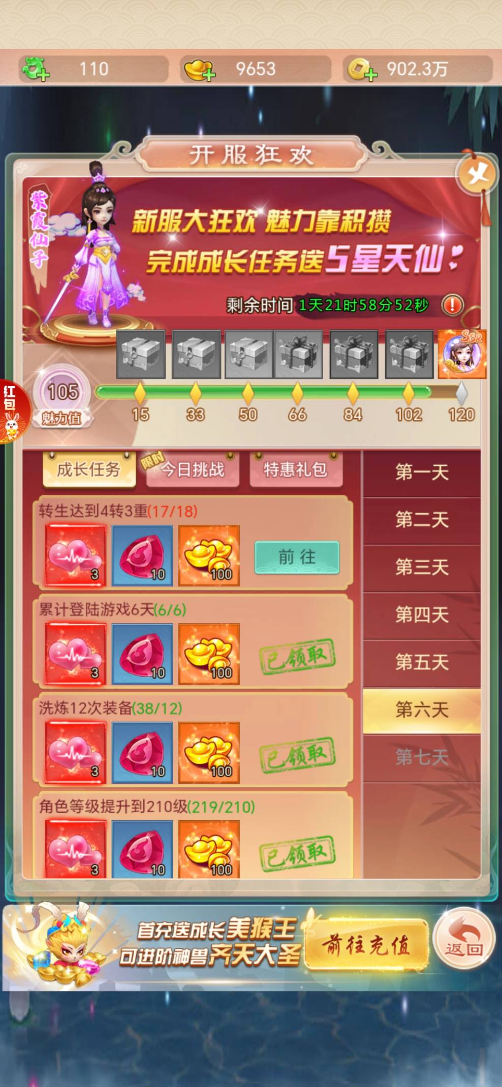 【打卡记录】七境开服6天0氪进前十还算顶吧