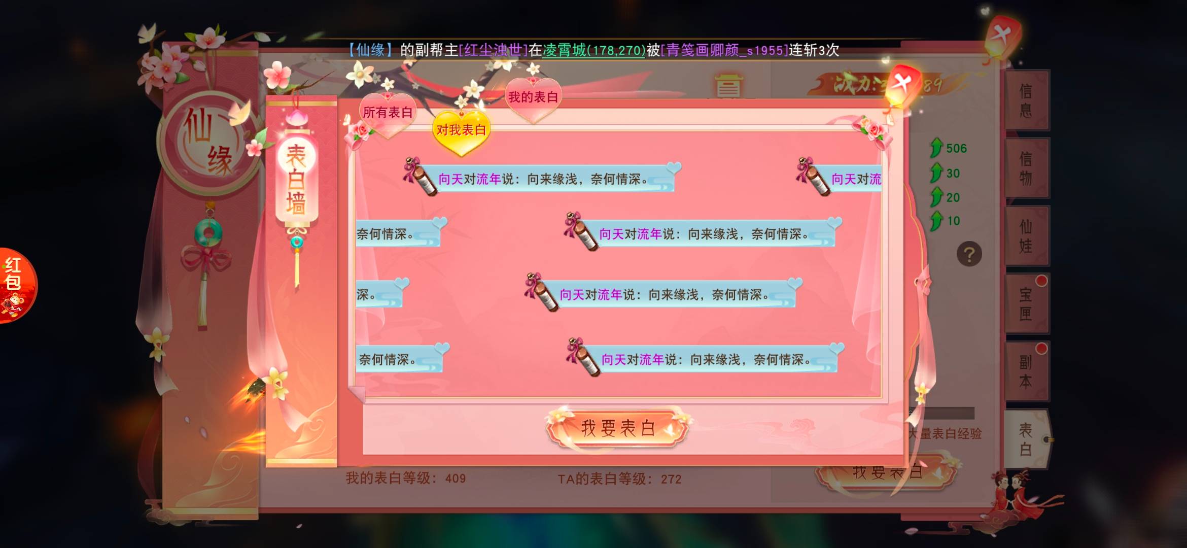 奖励理由:七夕晒情缘活动6银两奖励已发放