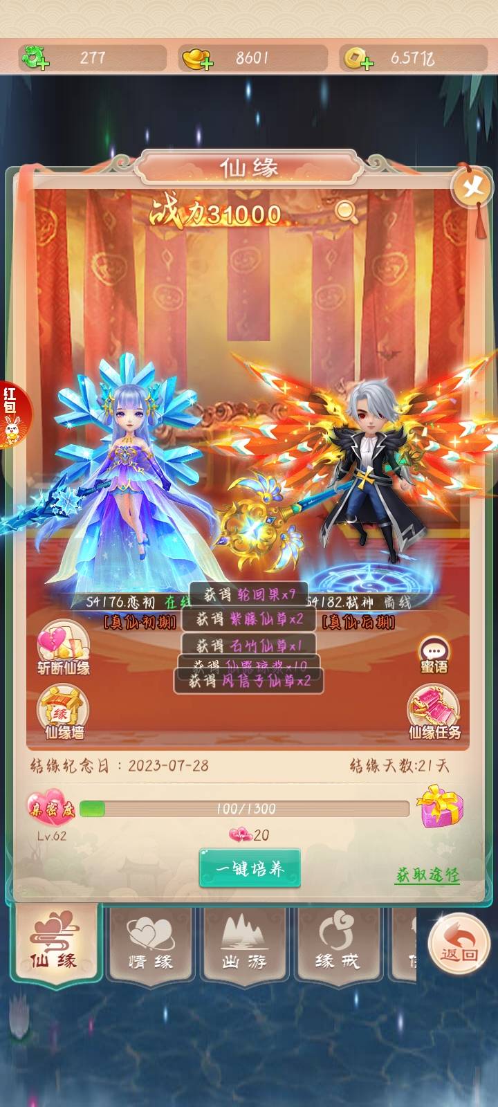 奖励理由:七夕晒情缘活动6银两奖励已发放