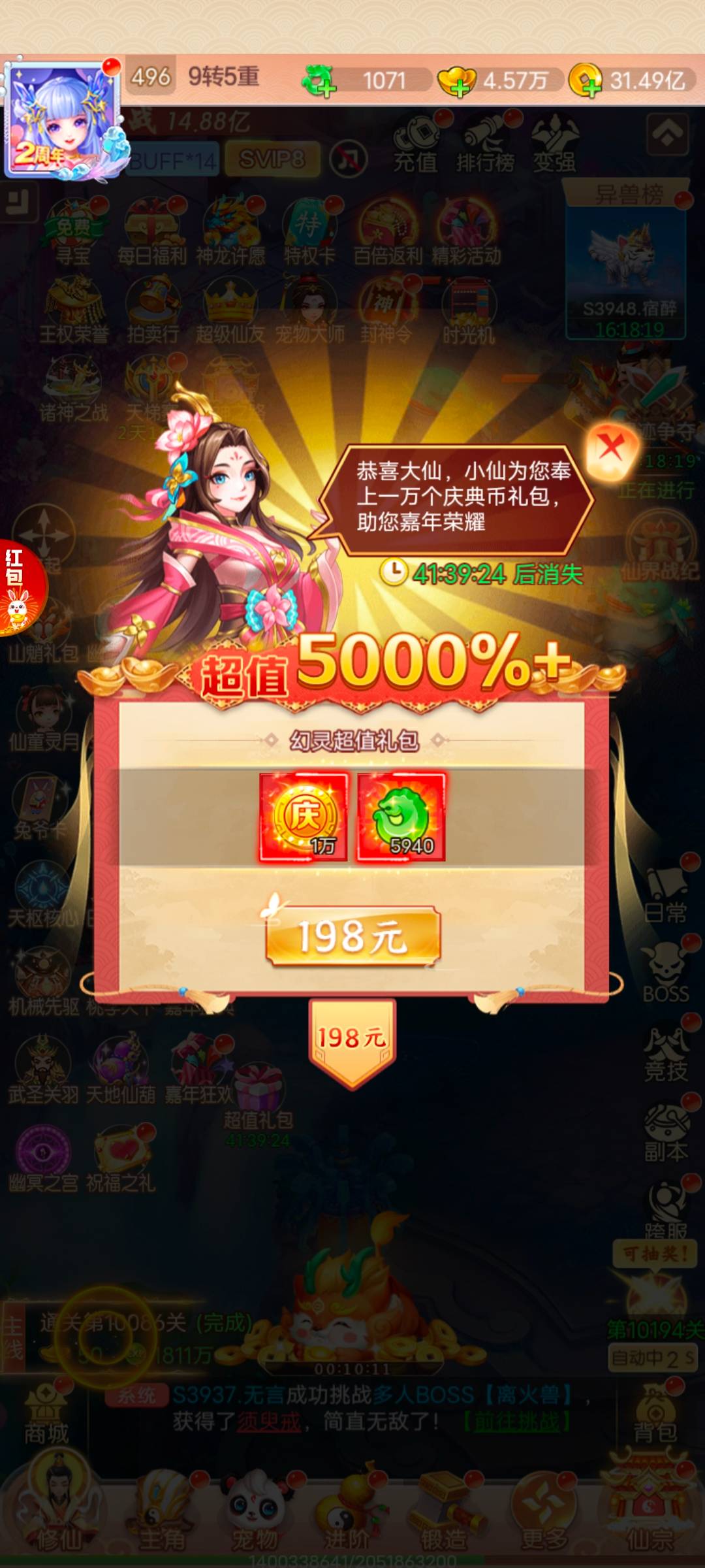 触发条件是获得噬神币·金并且开服89天以上的服务器才会有,获取间隔在一周内不会重复触发