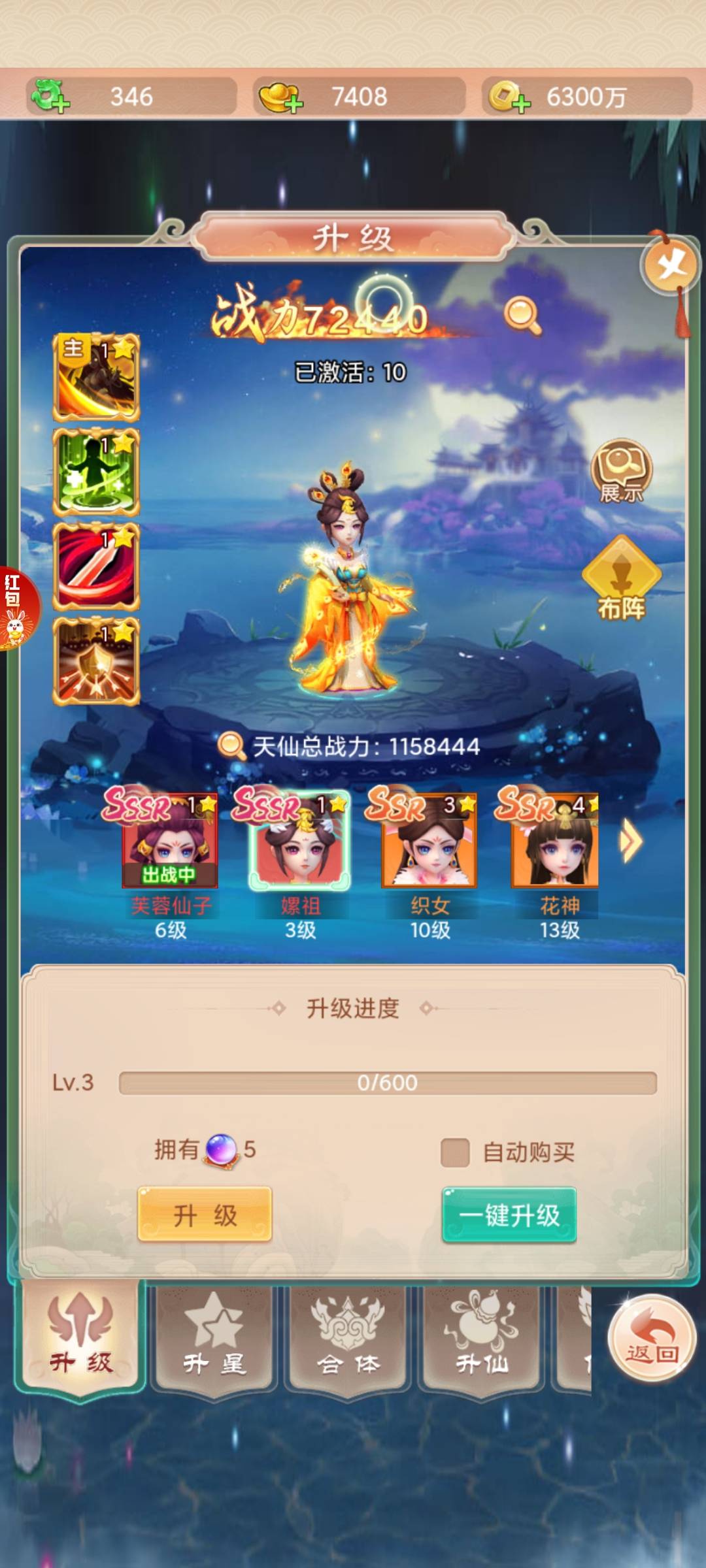 没合体之前用的技能百分比高的,我记得芙蓉仙子百分比好像高一点,合体之后用合体玄女