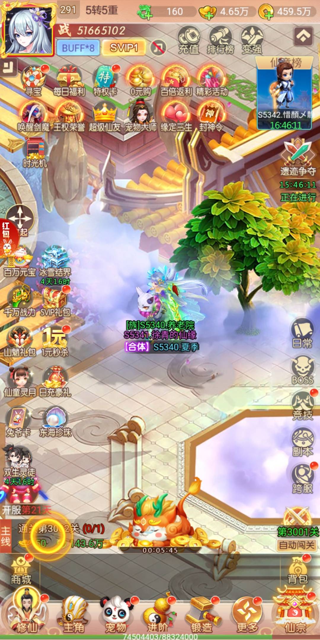 第一次玩这个游戏吧 感觉作为一个SVIP1已经很尽力了 毕竟之前开服后就创了个号 4-5天没上线。现在还在追着战力 感觉还行吧,就跨服一直有人天天蹲着我打BOSS跑来抢