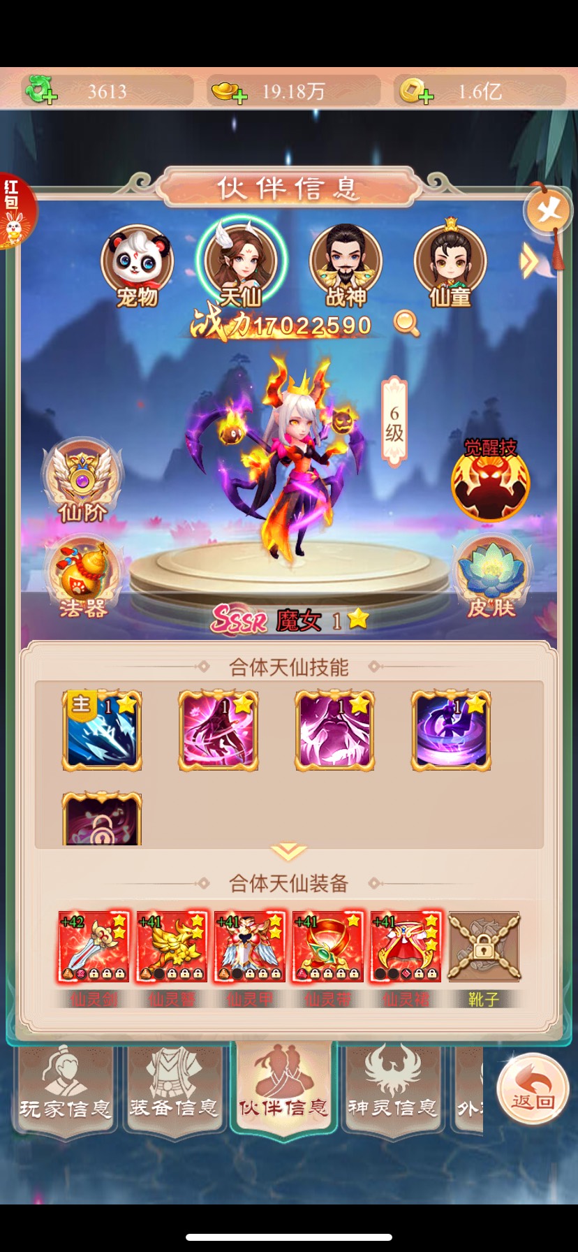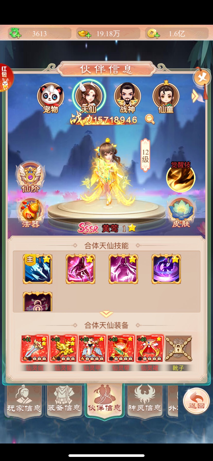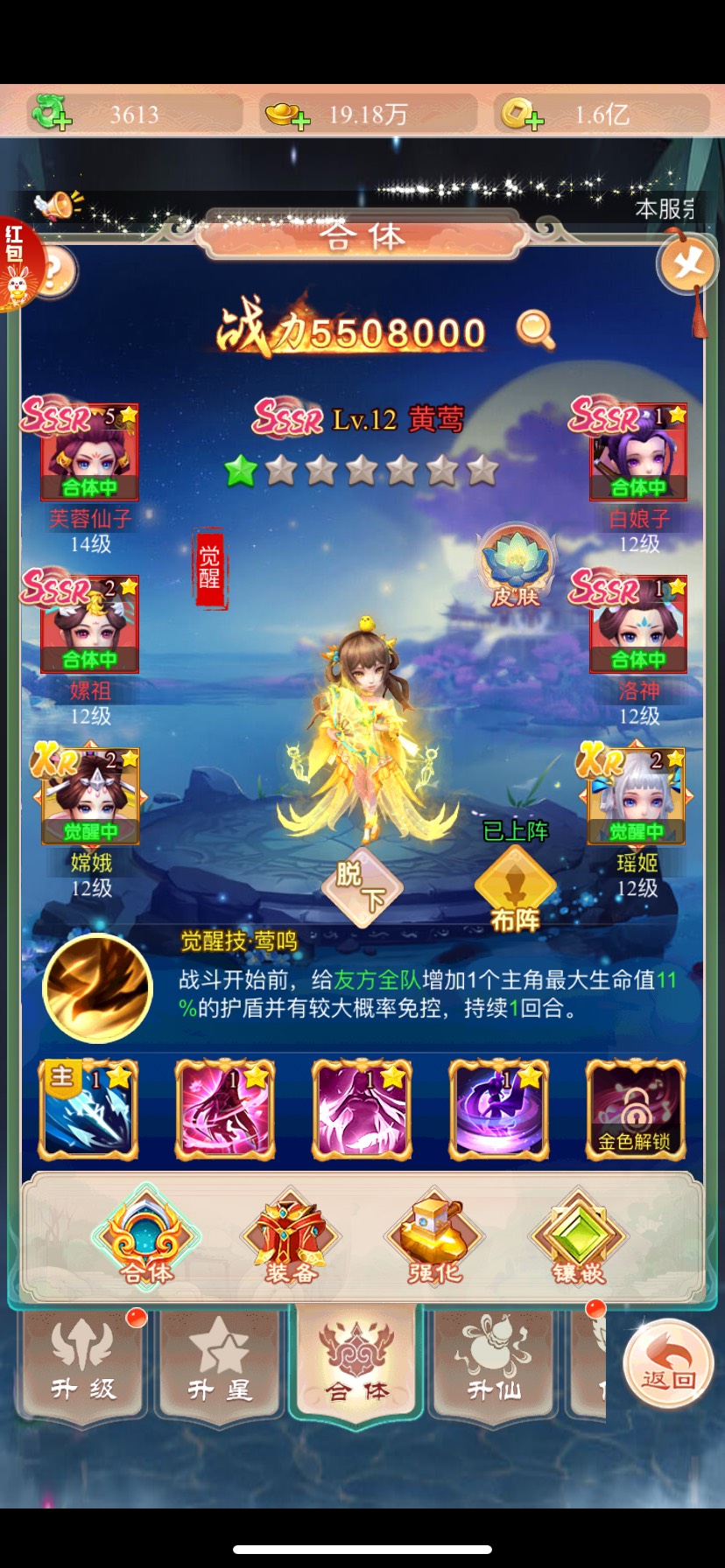 金色放上面,红色放下面,这样比较抗揍,平均升级四个天仙就好了,