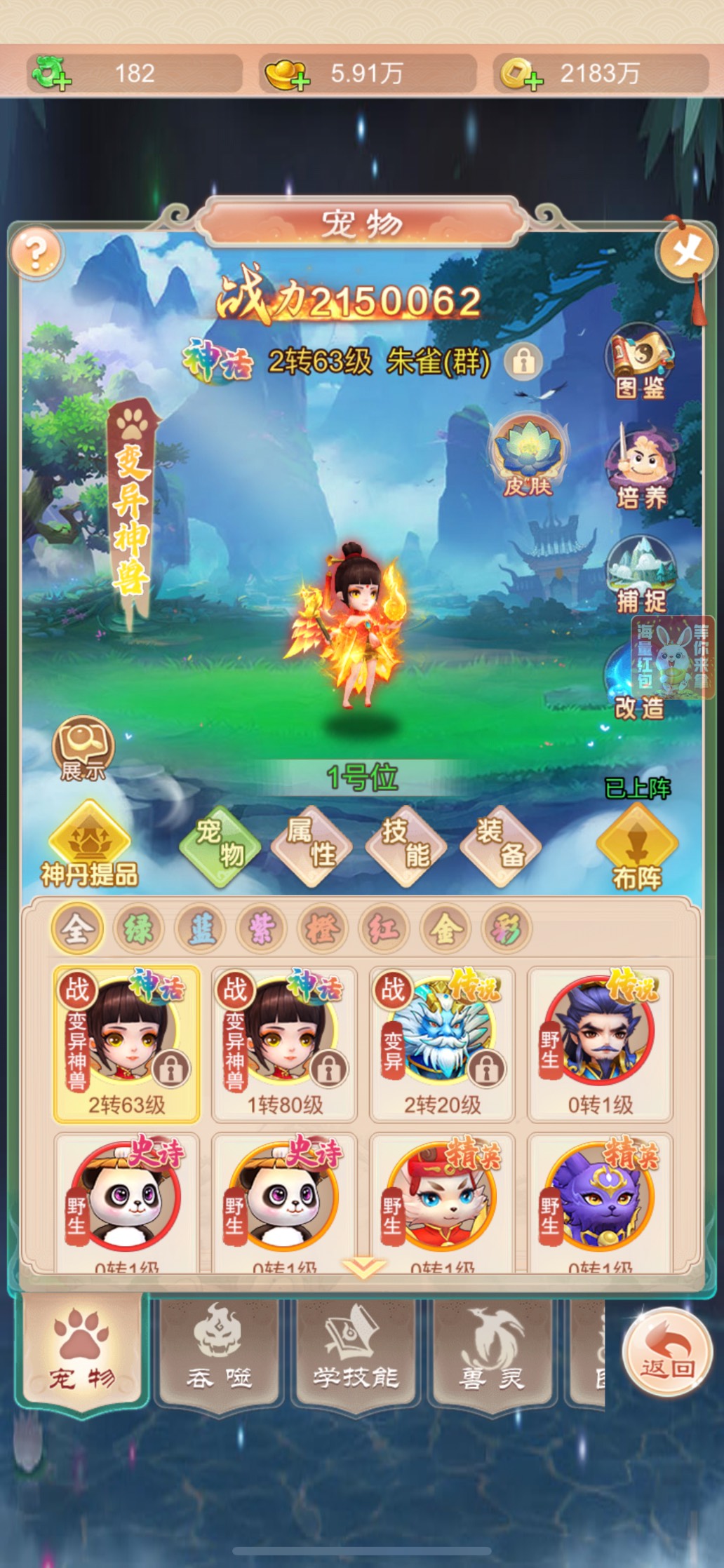 宠物资源要留,朱雀技能垃圾书把技能格子打满。再上技能