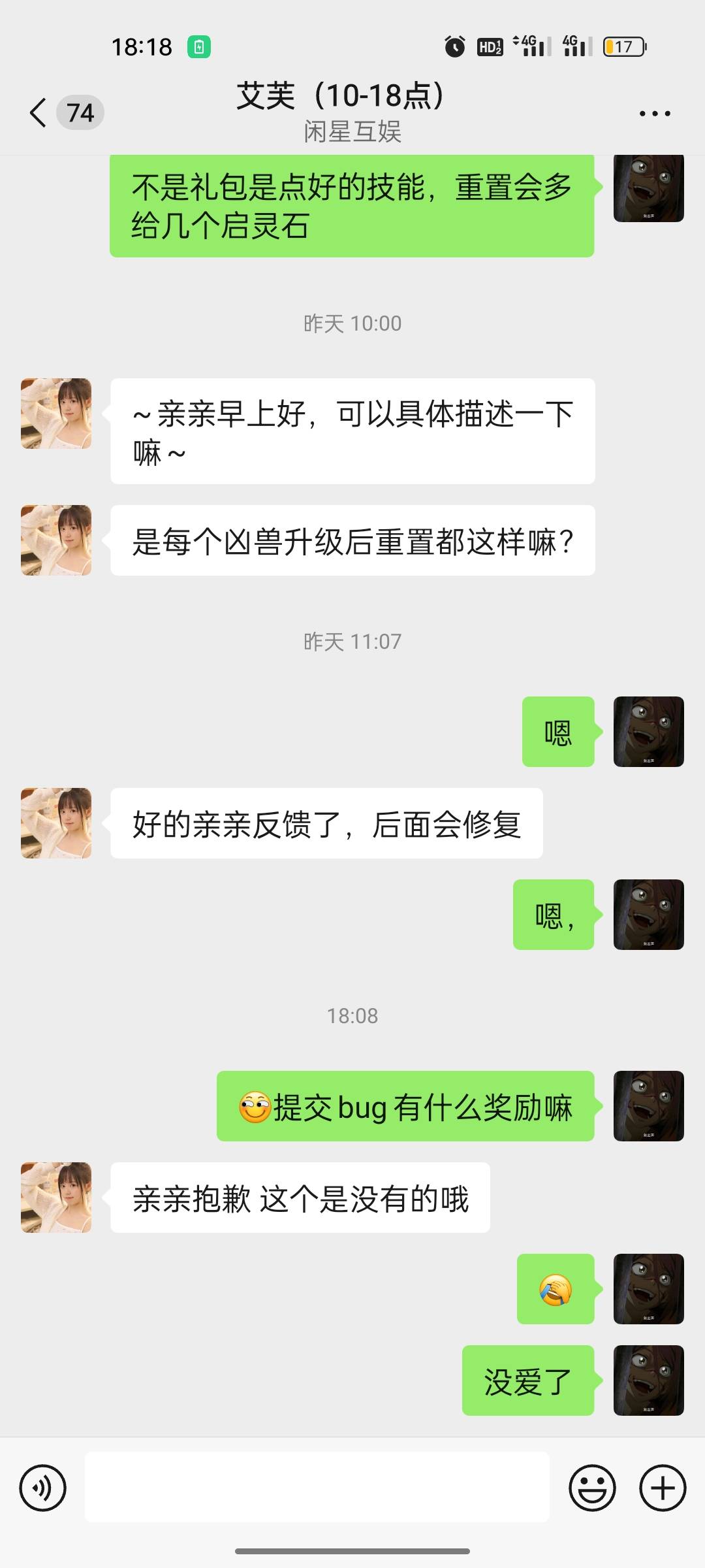 游戏bug第一时间提交,都不意识哈