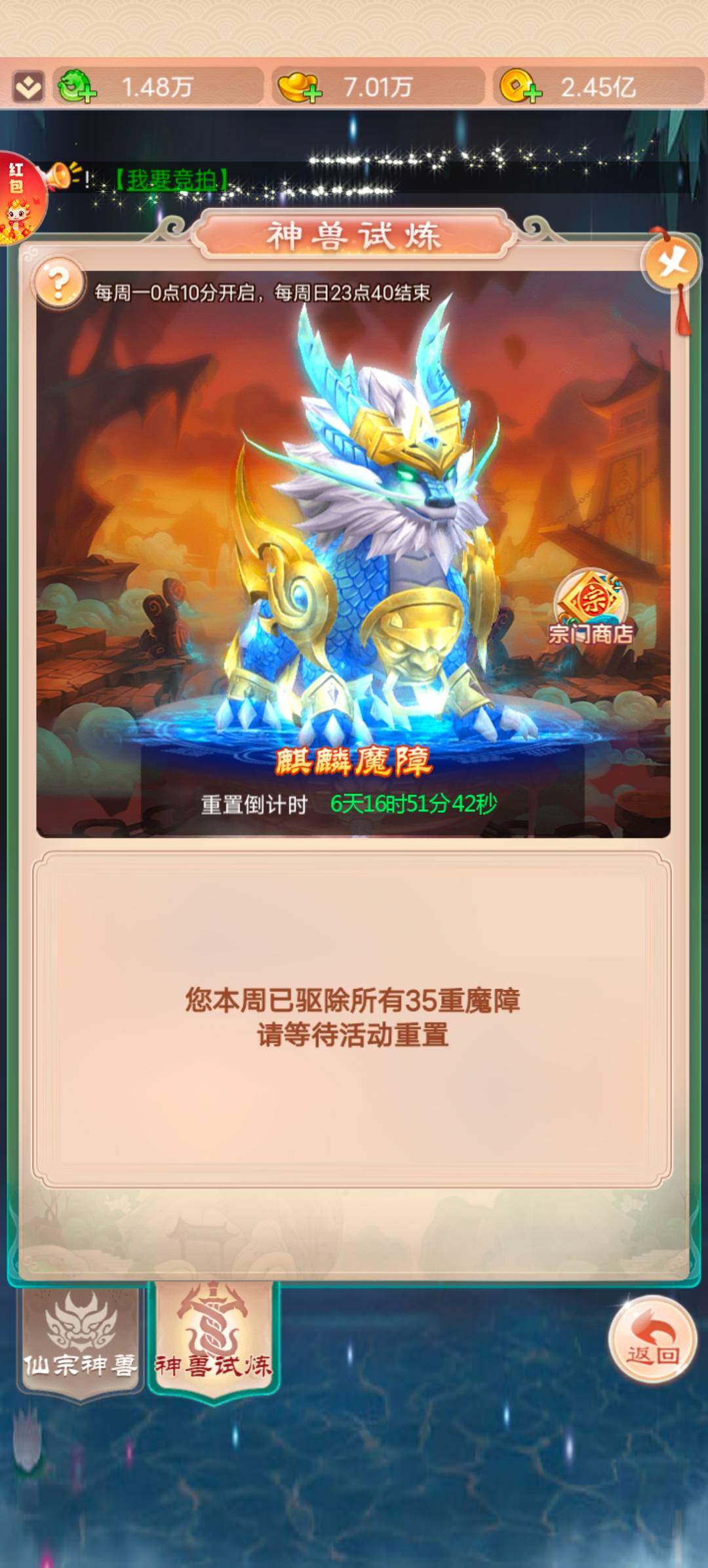 今天早上打神兽,神兽页面居然显示已通关,可我明明没打呀,这是咋回事?
