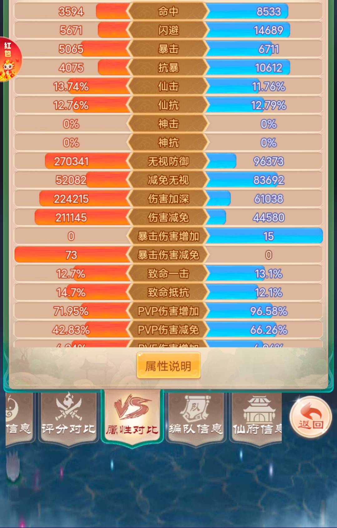 命中都没别人闪避高,暴击也没对方抗暴高,双P差太多,你打他几乎都miss他打你必命中,你打他不出暴击,他打你次次暴击,你打他伤害被免很多,他打你伤害增加很多